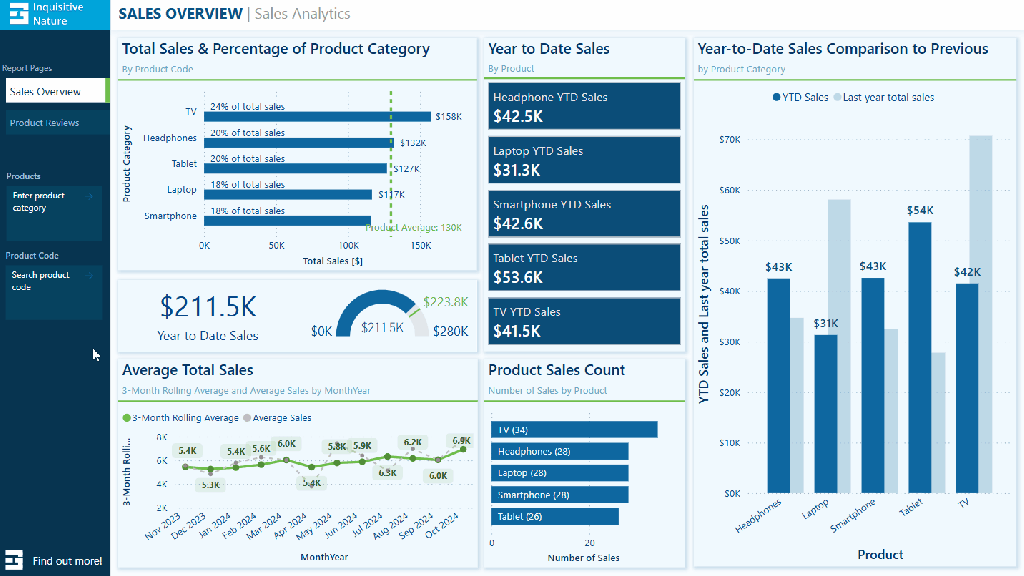 After entering and applying the desired input, the text slicer quickly filters the report page to display only the specified product category. Once the filter is applied, clicking the dismiss (“X”) button will remove it and return to the full dataset.