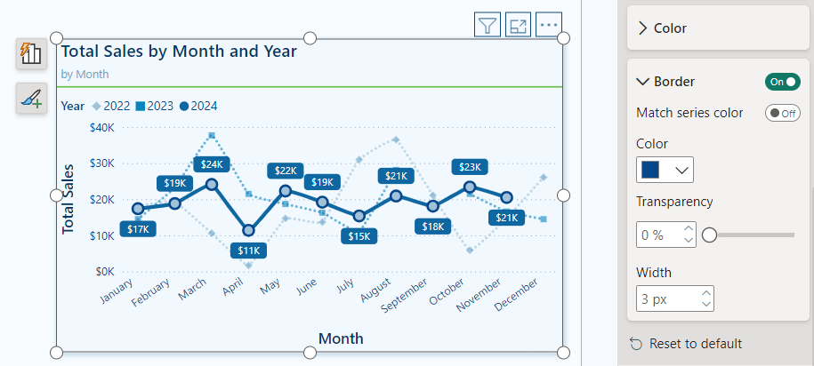 This feature is handy when there are numerous categories to choose from, as scrolling through the list can be time-consuming. Additionally, the text slicer does not require users to toggle on a search functionality like the standard dropdown-styled slicer. With the text slicer, users can enter the category, apply the filter, and quickly narrow the report to the relevant sales data.