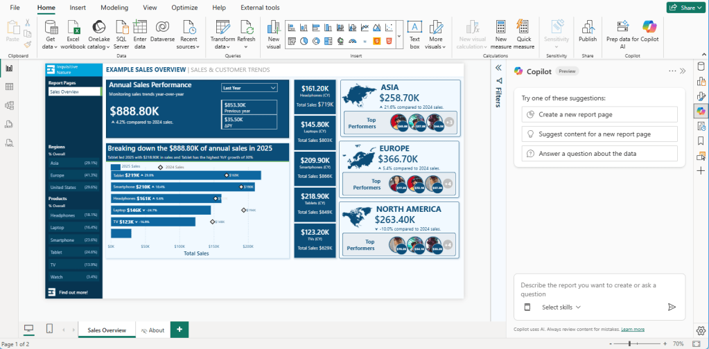 • Copilot in Power BI Desktop for Report Development: staying within the built-in experience but shifting focus from semantic model development to report design, visual creation, and data exploration